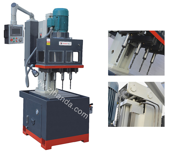 達人牌ZK5213X6A1立式多軸鉆床(采用多軸同步加工),是我公司匯集國內(nèi)外多軸鉆床研制開發(fā)推出的第二代全自動立式可調(diào)多軸鉆床,獲得5項專利,120項技術改進,20000小時的樣機試驗。最多可同時鉆6個孔,鉆孔范圍¢3-¢23,孔距可任意調(diào)整,也可根據(jù)客戶要求制作固定式多軸導板。切削HRC35以下黑色金屬,切削鑄鐵及有色金屬時更能發(fā)揮它的優(yōu)點,適應于大批量零件加工。ZB5223*6A1立式多軸鉆床因其顯著提高工件加工效率、節(jié)省人力成本的特點,產(chǎn)品一經(jīng)推出,即引起熱烈的市場反應。為您省力、省錢、省時,是達人多軸鉆床的使命!