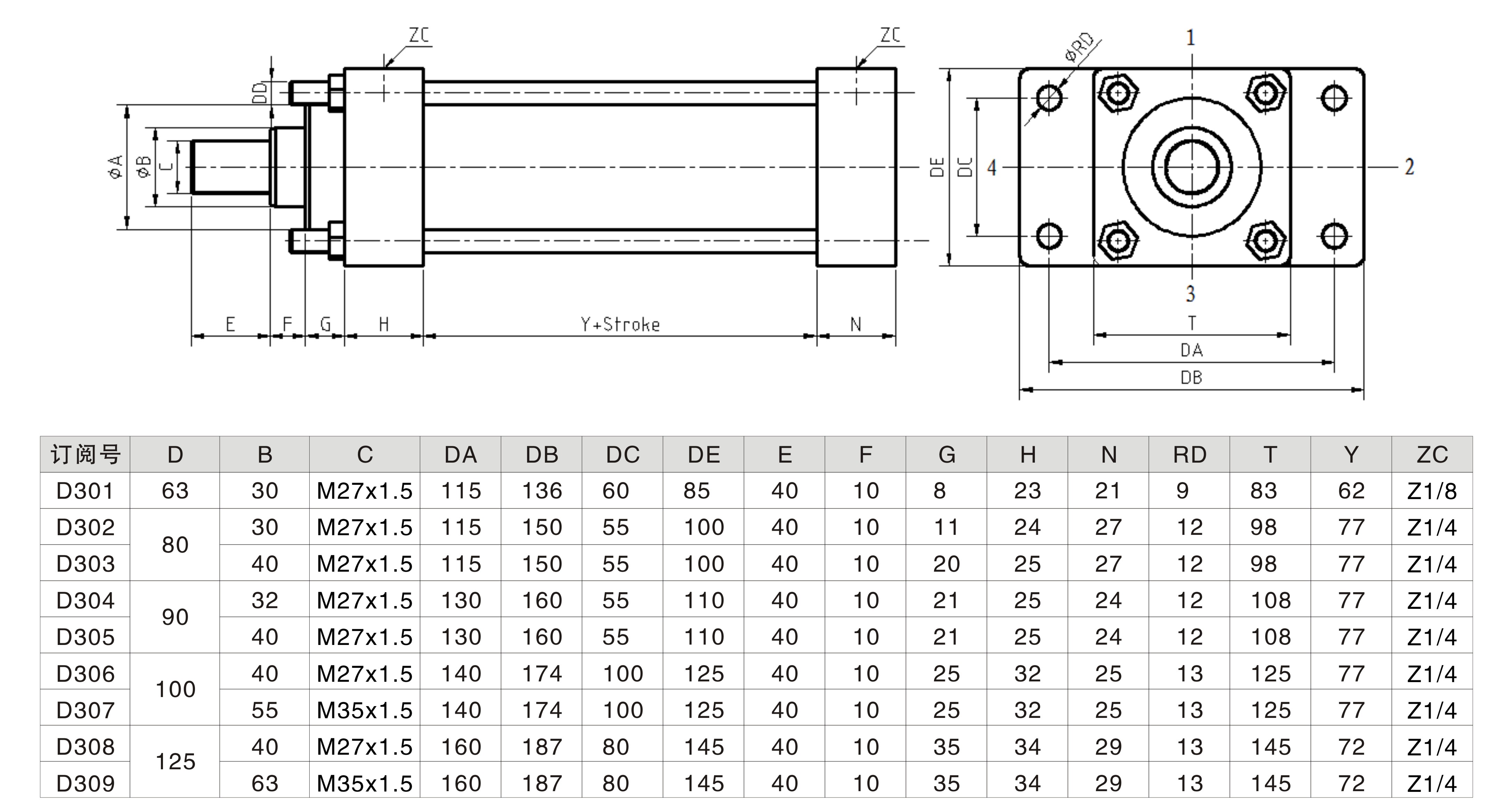 后法蘭安裝-低壓拉桿液壓缸尺寸圖及參數